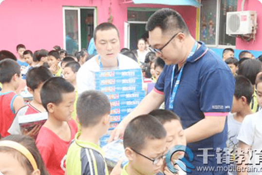 千鋒教育總部員工赴北京打工子弟文華學校,開展愛心助學公益活動,為孩子們捐贈文具用品;